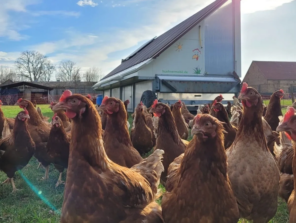 Frische Eier aus dem Hühnermobil! Genau die kriegen Sie bei uns im Hofladen und Verkaufsautomaten.